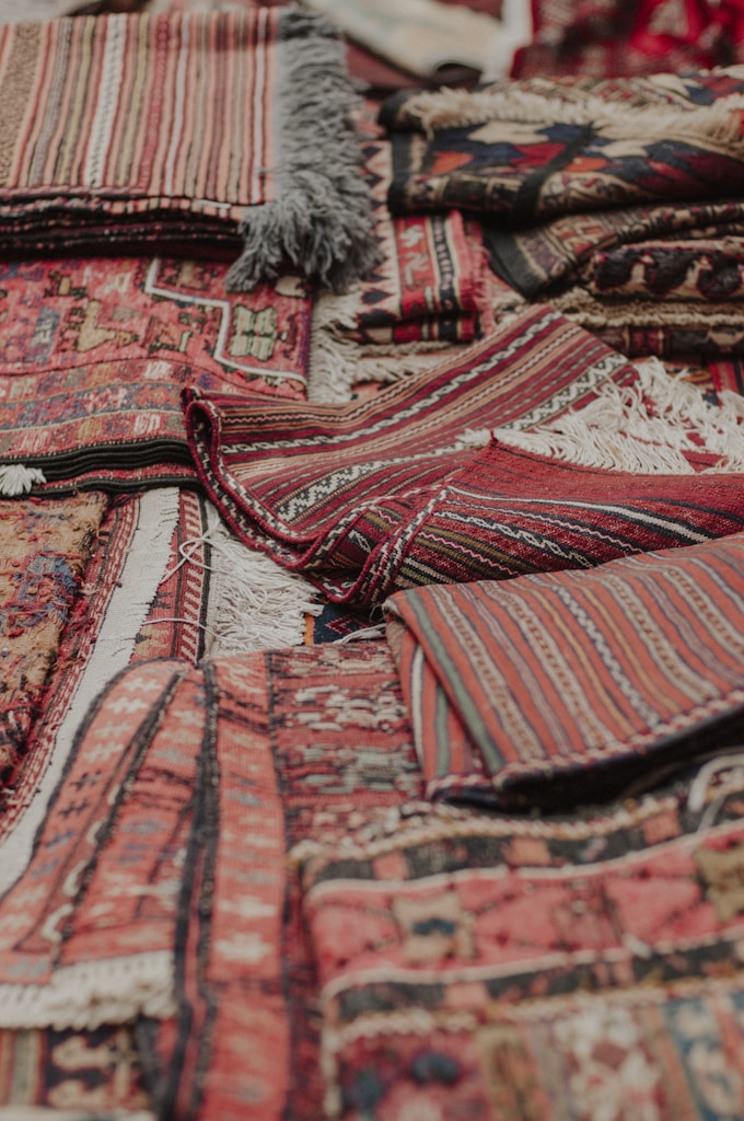 A vibrant collection showcasing the rich patterns and colors of Amazigh rugs.